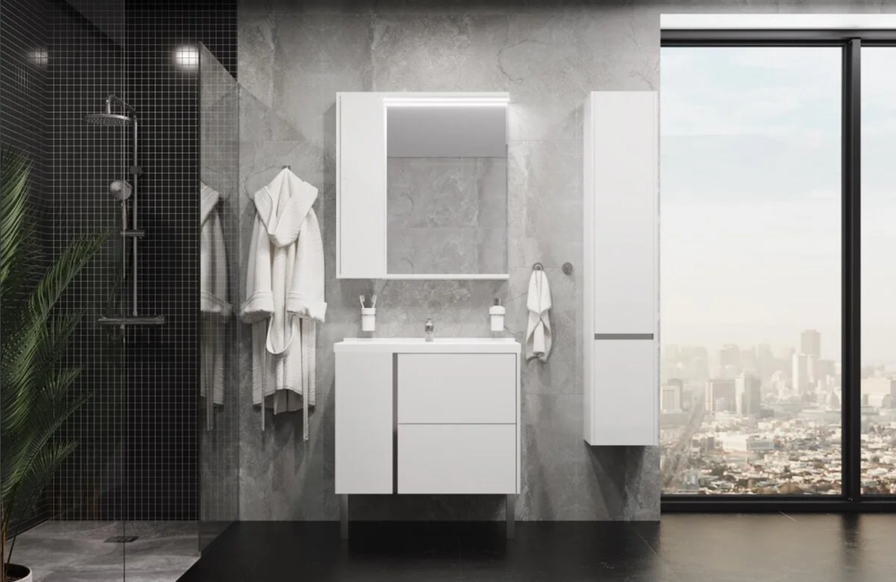 Зеркальный шкаф Акватон Стоун 1A228302SX010 80 x 83.3 см, с подсветкой, белый глянцевый