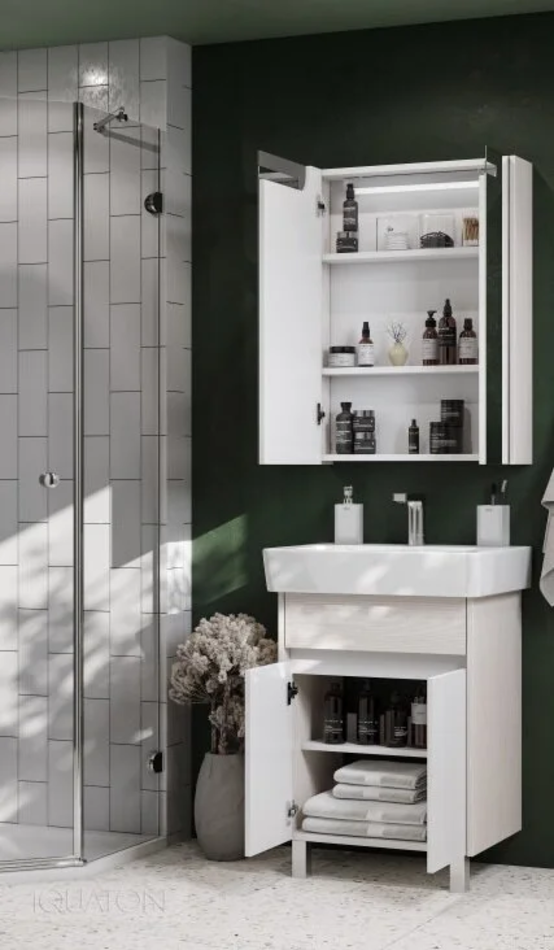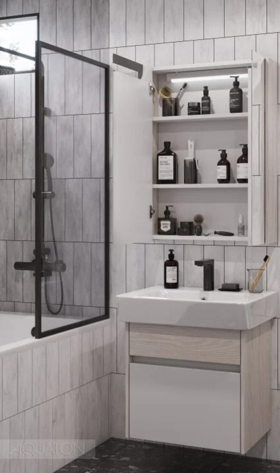Зеркальный шкаф Акватон Верди PRO 60 см с подсветкой, белый, ясень фабрик, 1A206902VDAV0