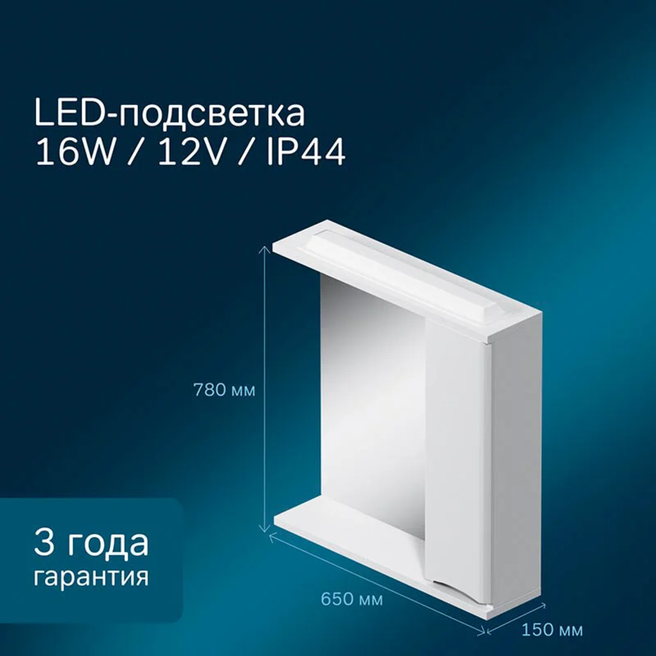 Зеркальный шкаф Am.Pm Like M80MP0651WG 65см, с подсветкой