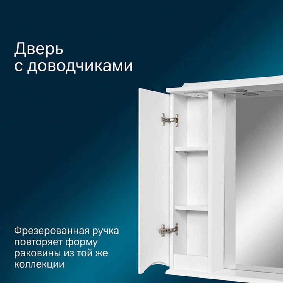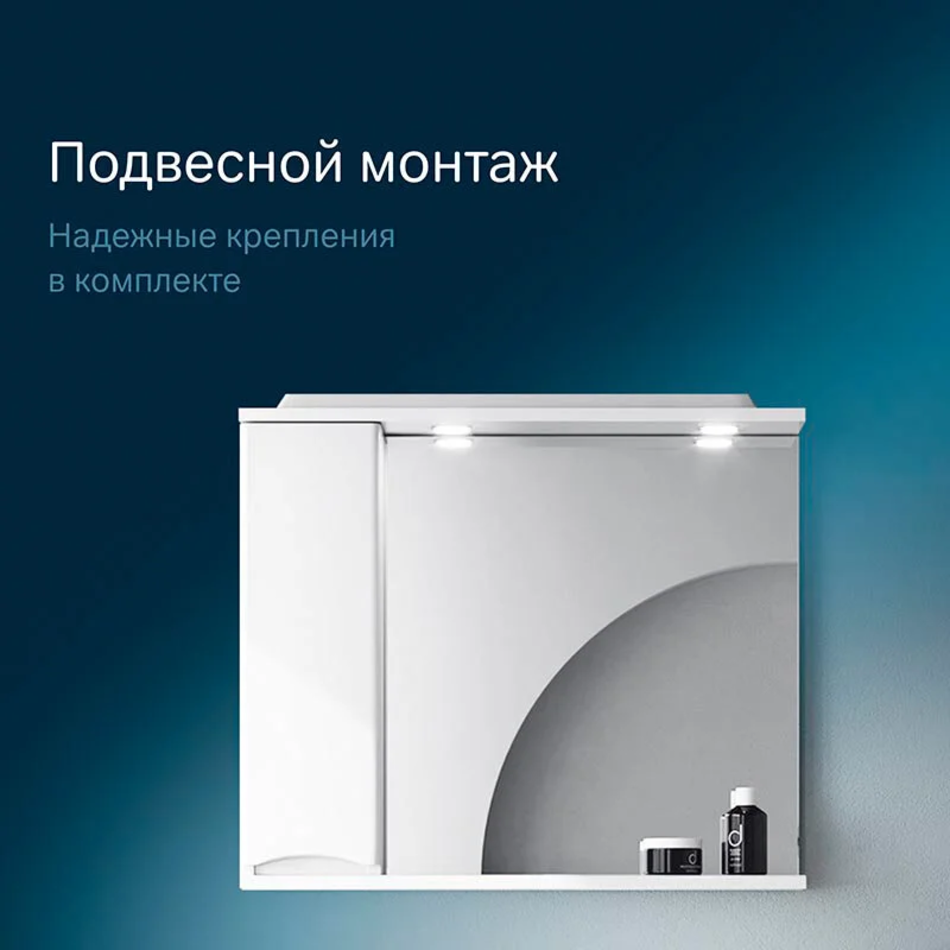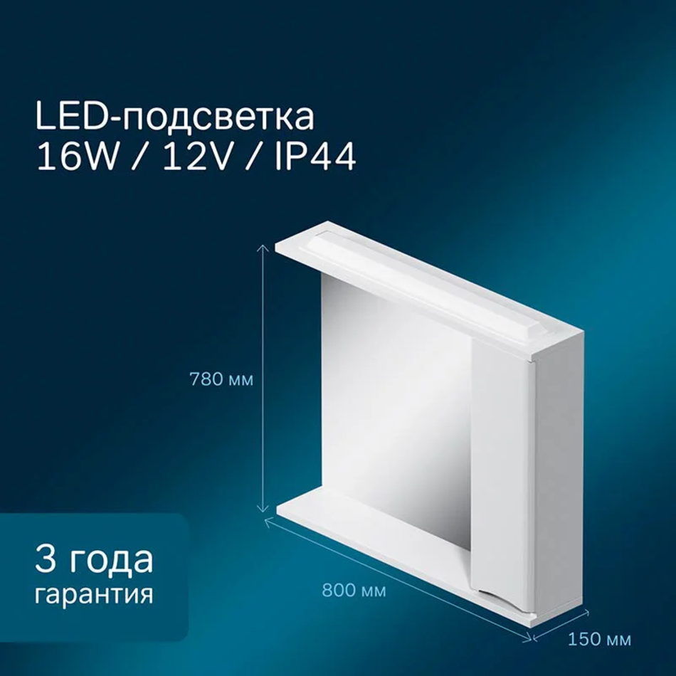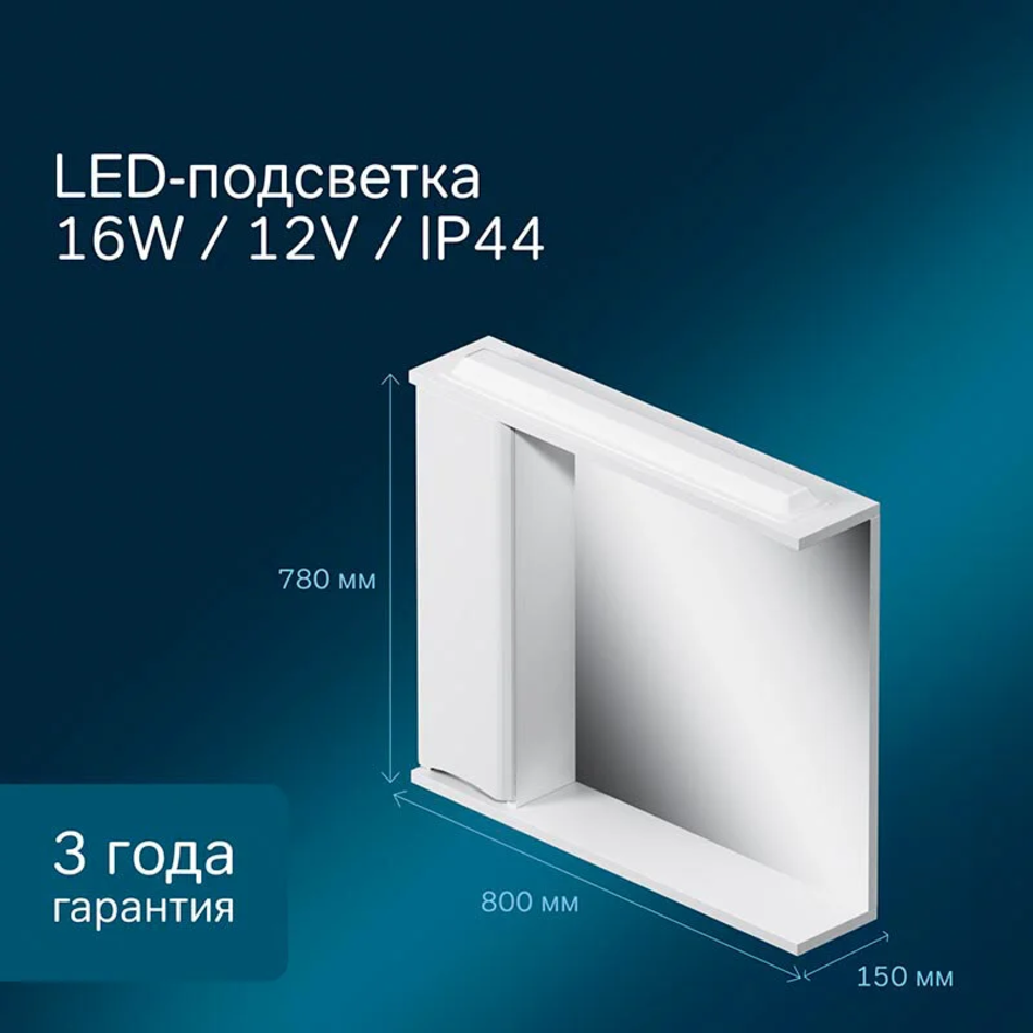 Монтаж: подвесной Размер: 800*780*150 мм С подсветкой Дверца с доводчиком Исполнение: шкафчик справа или слева Цвет: белый глянец