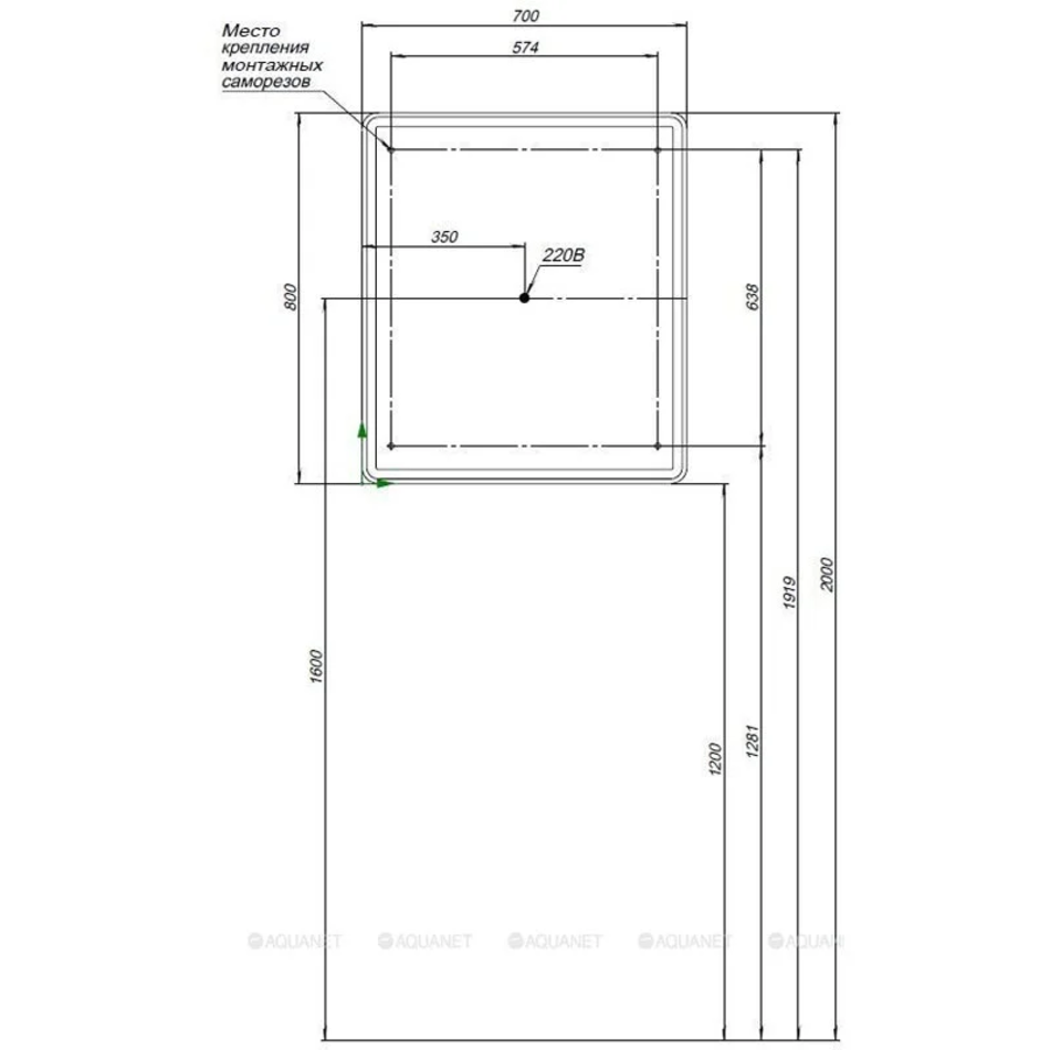 Зеркальный шкаф Aquanet Оптима (Optima), 70 х 80 см, с LED подсветкой, сенсорный выключатель, 00311861