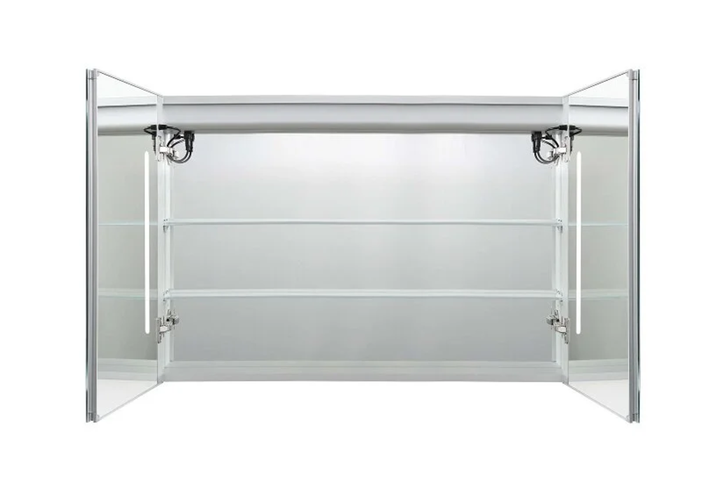 Две зеркальные дверцы шириной 49,85 см. Двусторонние зеркальные двери и зеркальные боковины