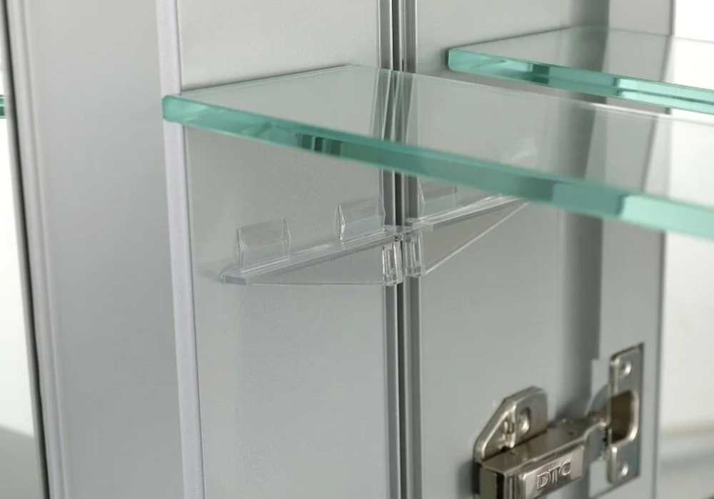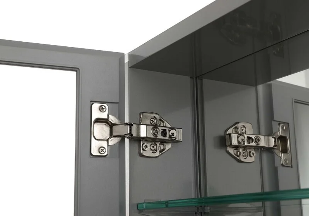 Зеркальный шкаф оснащен практичными полочками, которые позволяют организовать хранение различных предметов — от косметики до банных принадлежностей. Пространство внутри шкафа можно легко настроить под свои нужды, благодаря регулируемым полкам. Благодаря компактным размерам и небольшой глубине такой шкаф-зеркало с дверками, которые скрывают банные предметы от глаз и пыли, будет хорошей альтернативой для тех, кто ищет небольшие полочки в ванную комнату. Петли DTC с доводчиком и углом открывания на 110 градусов обеспечивают плавное и бесшумное открытие дверей, что делает использование шкафа комфортным на протяжении всего срока эксплуатации. Конструкция шкафа выполнена из влагостойких материалов, что гарантирует его долговечность даже в условиях повышенной влажности. Этот шкаф с зеркалом для ванной станет не только функциональным элементом ванной комнаты, но и стильным акцентом, который подчеркнет вкус и заботу о деталях.