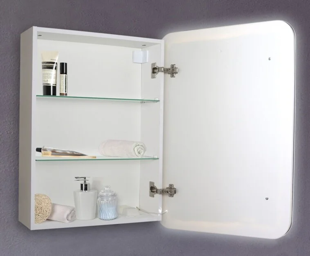 Зеркальный шкаф Azario Фиджи 60 x 75 см, часы, белый, LED00002363