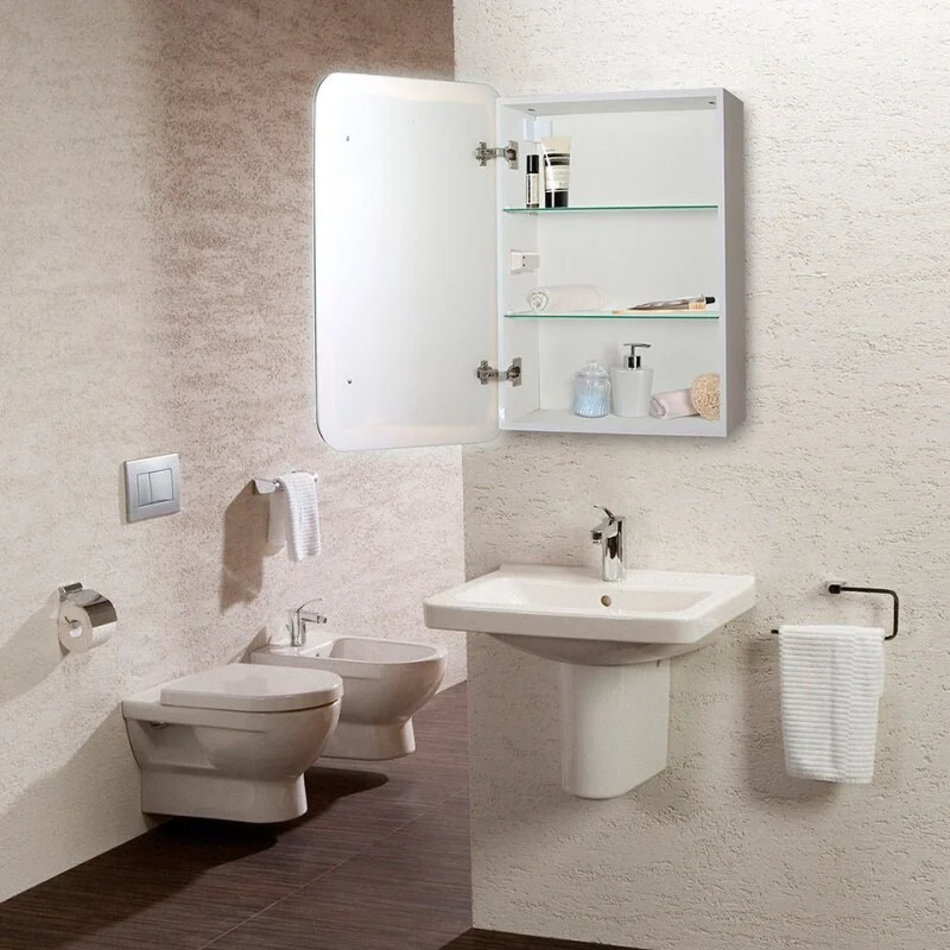 Зеркальный шкаф для ванной — отличная находка для ванной комнаты любых размеров. Он не занимает много места и достаточно функционален. Шкаф - перевертыш, позволяет устанавливать его как в левом, так и в правом исполнении. Петли с доводчиком обеспечат плавное закрытие. В боковой части корпуса встроена розетка. Две стеклянные полки устанавливаются исходя из индивидуальных предпочтений.