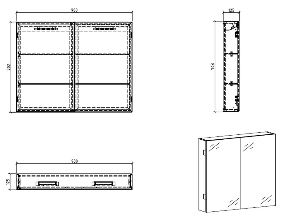 Дополнительная информация: зеркальный шкаф оснащен нижней подсветкой, распашные двери оборудованы двусторонним зеркальным полотном, сенсорным выключателем
