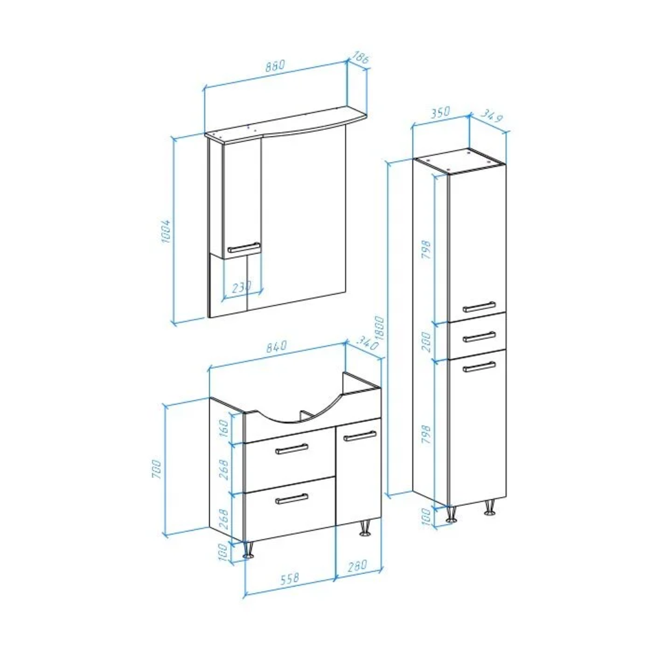 Зеркальный шкаф Bellezza Балтика 4618915002079/4618915001072, 90 см, с подсветкой, цвет бежевый, левый/правый