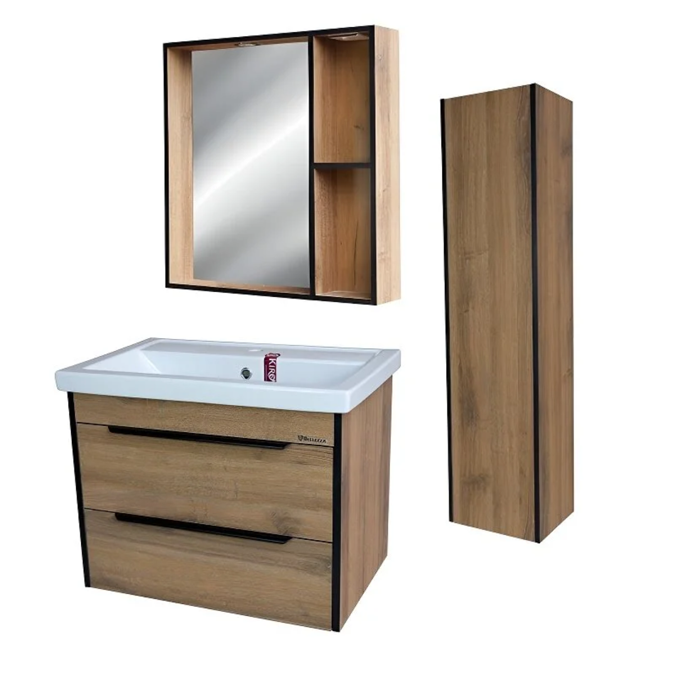 Зеркальный шкаф Bellezza Бруно 4612211030491, 70 см, с подсветкой, цвет табакко
