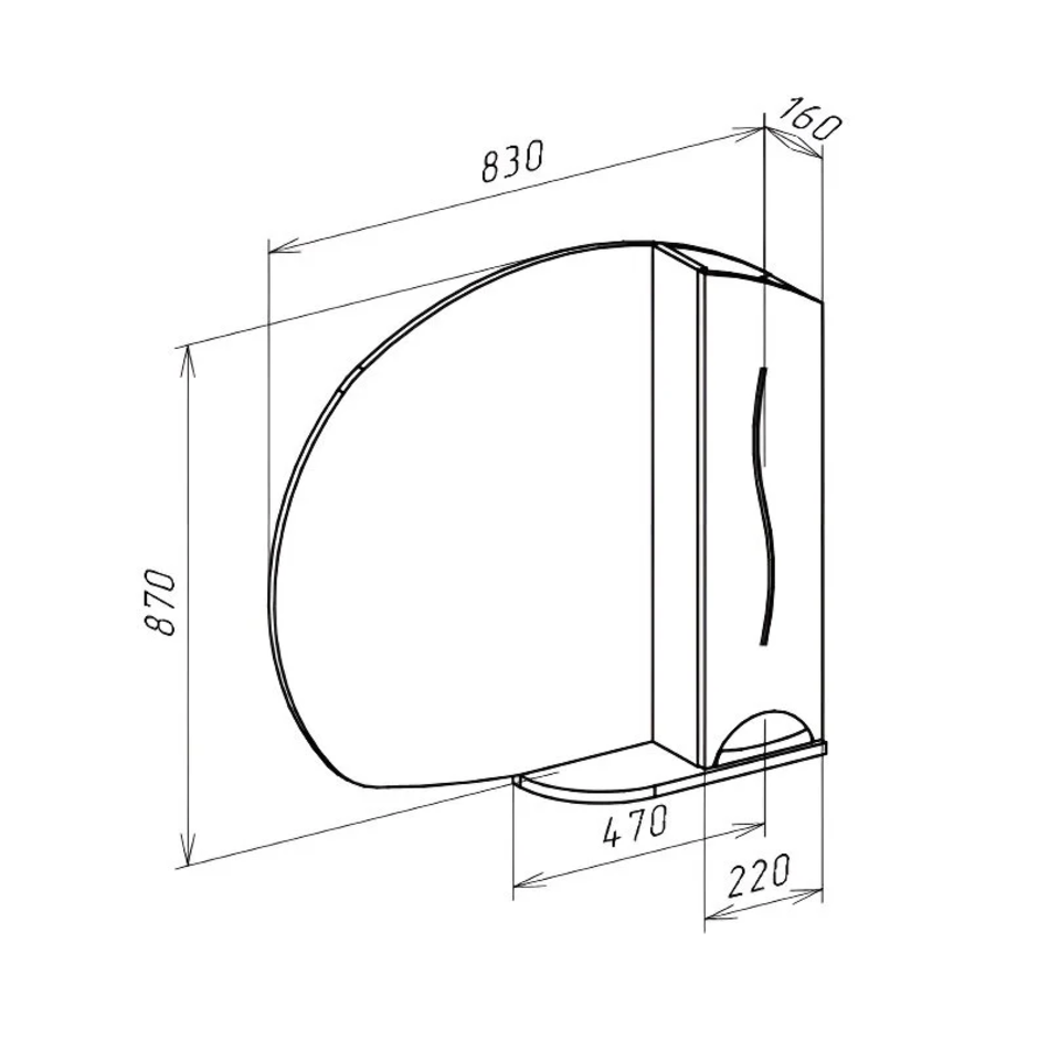 Зеркальный шкаф Bellezza Глория 4619514001012, 85 см, цвет белый, правый