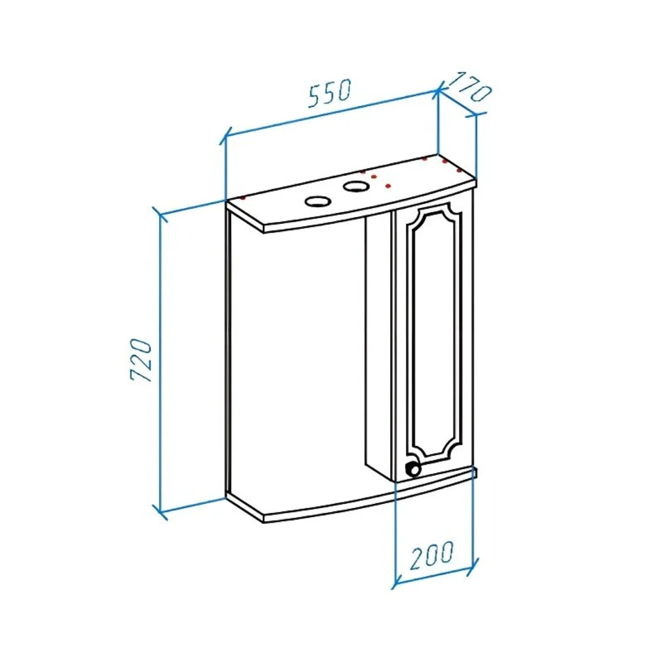 Зеркальный шкаф Bellezza Кантри 55 см, с подсветкой, белый, правый, 00000006164