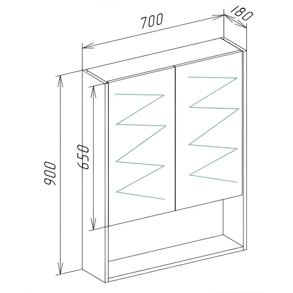 Зеркальный шкаф Размер: 70 x 18 x 90 см Монтаж: подвесной Двери распашные: 2 Система плавного закрывания Материал: МДФ, ЛДСП Форма: прямоугольная Цвет: белый