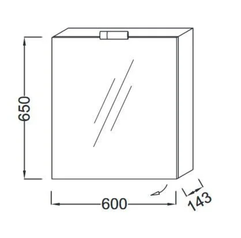 1 двойная зеркальная дверца с механизмом "плавное закрывание", 2 стеклянные полочки, 1 галогеновый светильник, розетка и выключатель.