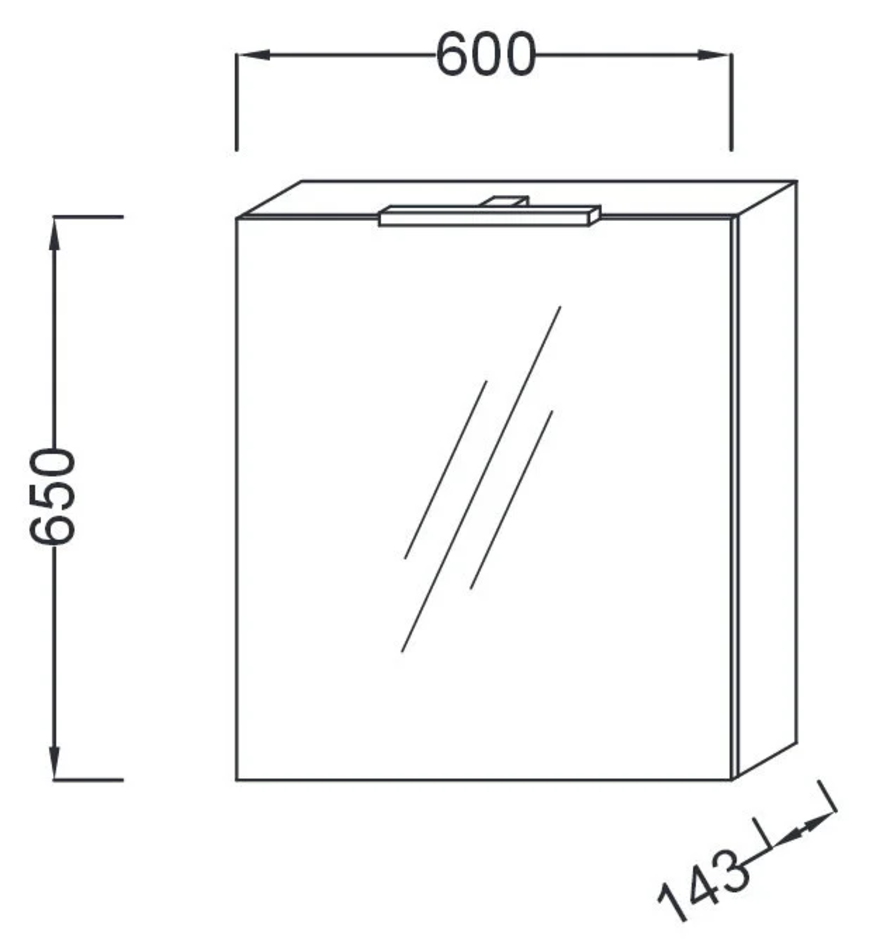 Размеры Ш60*Г14,3*В65 см