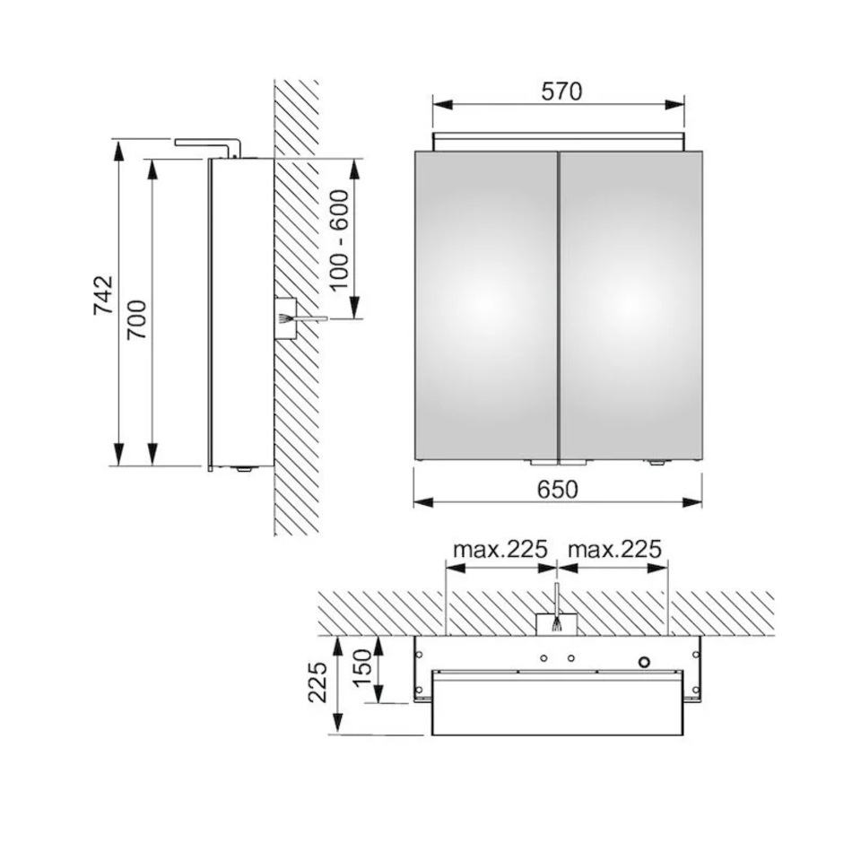 Этот зеркальный шкаф поражает разнообразием освещения для вашей ванной комнаты: в нем установлен светодиодный светильник с прямым освещением, который выглядит как световой парус, непрямое настенное освещение и дополнительная подсветка умывальника. Он оснащен поворотным регулятором яркости для включения и выключения, а также для регулировки яркости и управления тремя различными режимами освещения. В интерьере также есть все необходимое: обратите внимание на две внутренние розетки и стеклянные полки 2x3 с регулируемой высотой, на которых достаточно места для аксессуаров. Keuco Royal: по-королевски хорош!!! Характеристики продукта долговечное светодиодное освещение (вверху) непрямое, долговечное светодиодное освещение (вверху/внизу) Срок службы светодиодов более 30 000 часов 2 зеркальные двери с внутренней и внешней сторон корпуса зеркальные Поворотный диммер Keuco для включения/ выключения, регулировки яркости и переключения между вариантами освещения (снаружи, внизу справа) 2 розетки (внутри, внизу посередине) 6 регулируемых по высоте стеклянных полок с подсветкой для умывальника включает светодиодные ленты со штекером подключением, которые позволяют квалифицированному электрику заменить неисправные светодиоды.