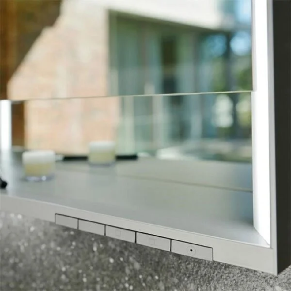 боковины корпуса из белого лакированного стекла, задняя стенка зеркальная
