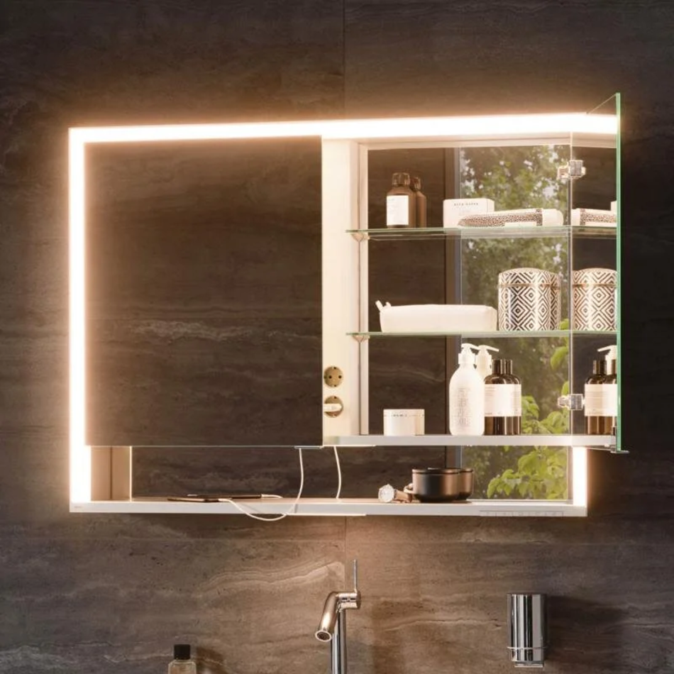 Зеркальный шкаф Keuco Royal Lumos 14308171301, 105 см, с подсветкой, серебристый анодированный/белое стекло