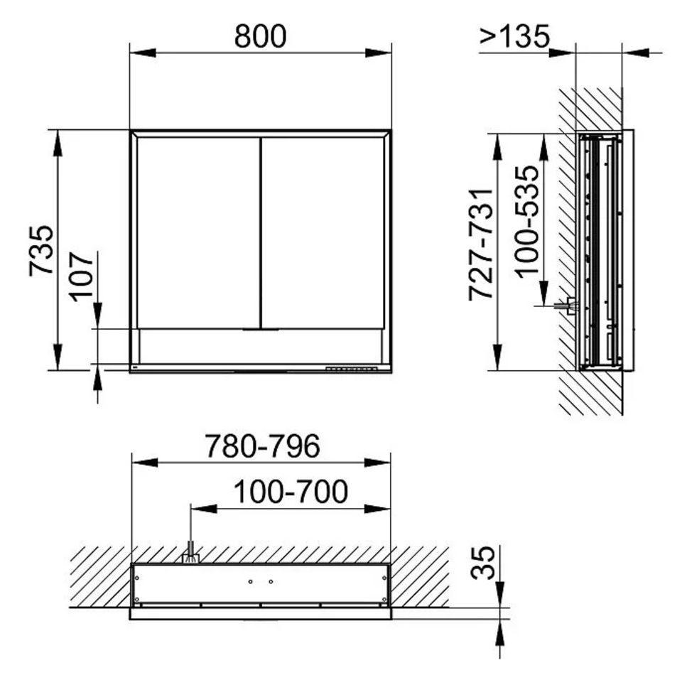 Зеркальный шкаф Keuco Royal Lumos 80 см с подсветкой, 14312171301