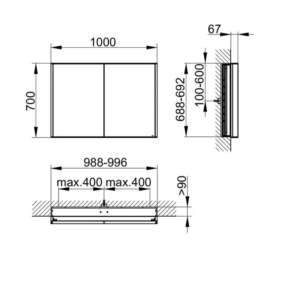 Зеркальный шкаф Keuco Royal Match, 12813171301, 100 см, с подсветкой, алюминий серебристый