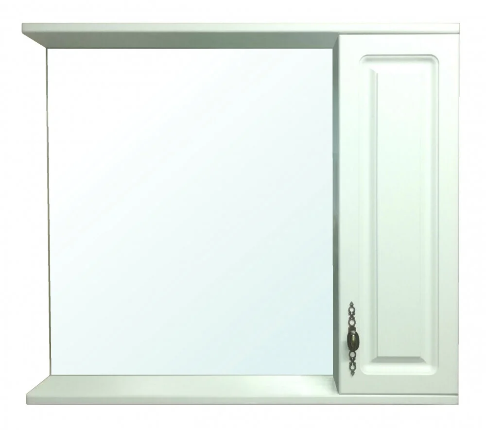 Зеркальный шкаф Размер: 80 х 14 х 70 см Монтаж: подвесной Двери распашные: 1 Без подсветки Ориентация: правая Полка Крепления Материал: МДФ Форма: прямоугольная Цвет: белый