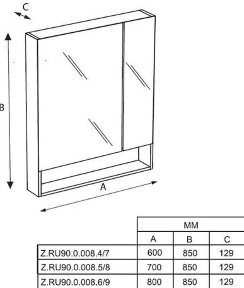 Ширина: 60 см Глубина: 12.9 см Высота: 85 см Форма: прямоугольная Цвет: белый
