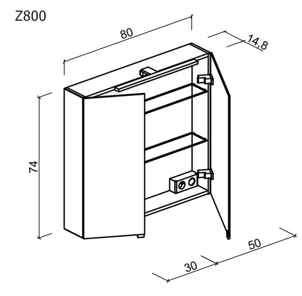Зеркальный шкаф Sancos Hilton 80, с подсветкой, 80 х 74 см, Z800