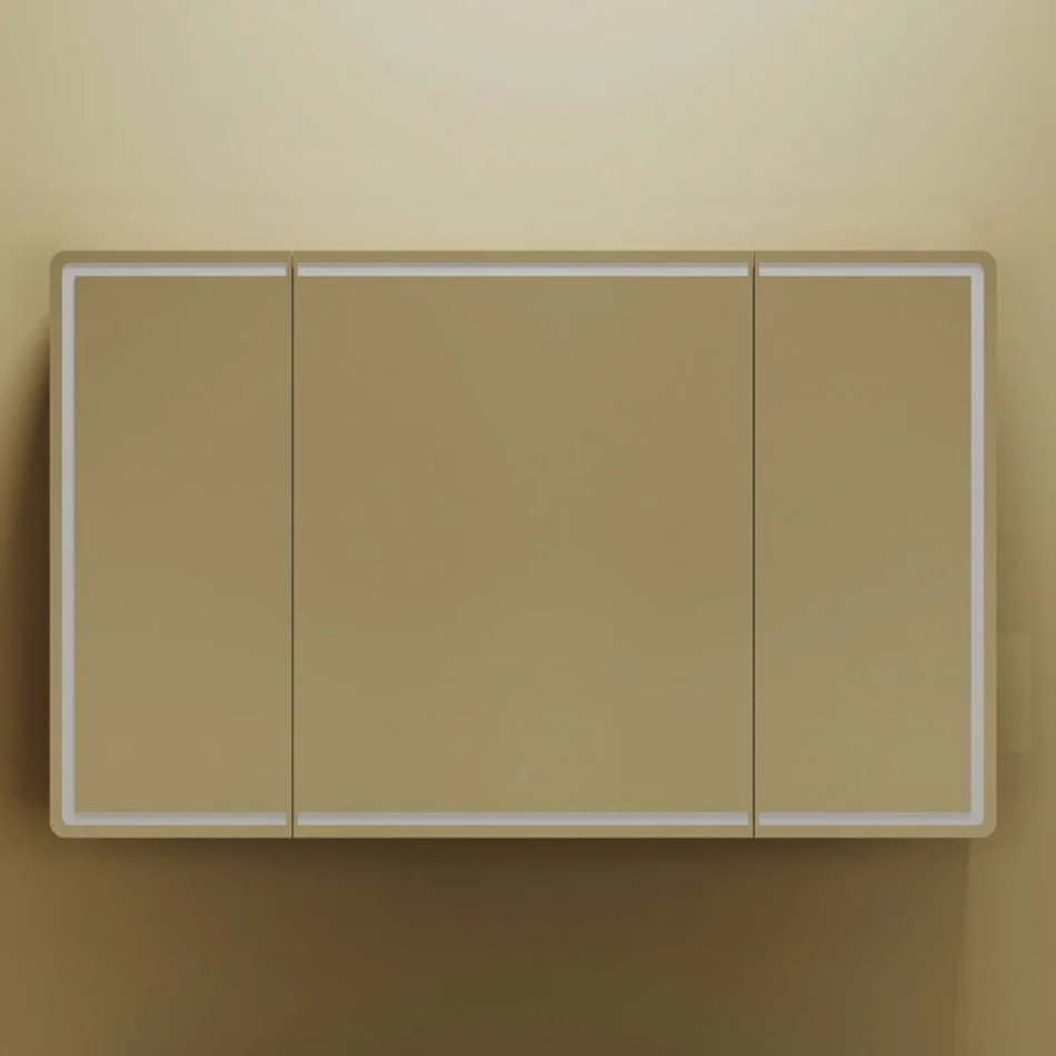 Зеркальный шкаф для ванной комнаты SANCOS Mirror 1190x150х740 мм, с LED подсветкой, корпус выполнен из лдсп цвет дуб чарльстон, диммируемое сенсорное управление подсветкой, 6 полок стекло.