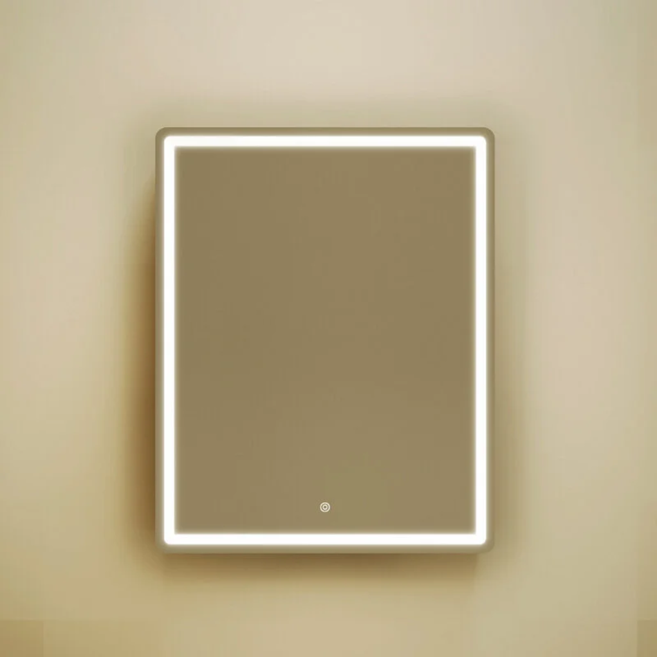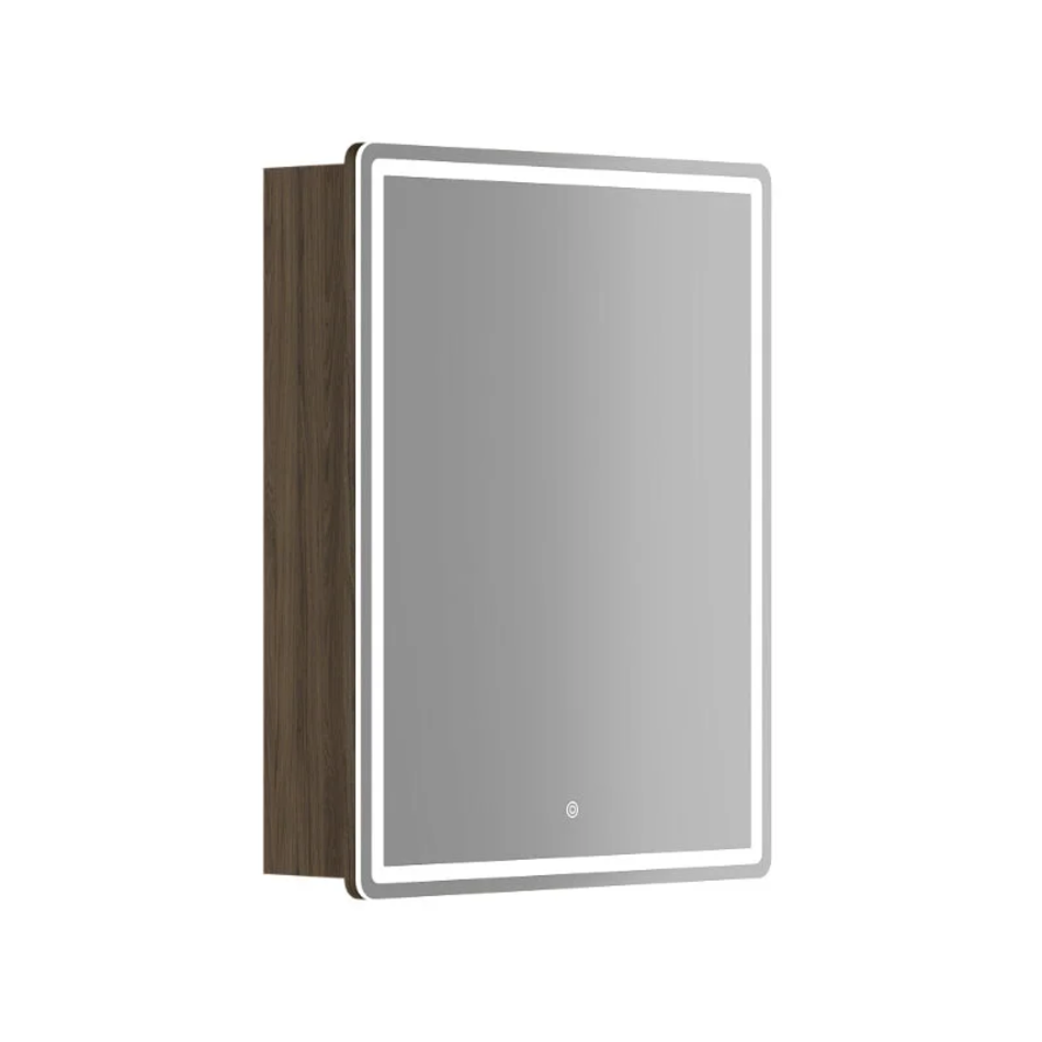 Зеркальный шкаф для ванной комнаты SANCOS Mirror 590x150х740 мм, с LED подсветкой, корпус выполнен из лдсп цвет дуб чарльстон, диммируемое сенсорное управление подсветкой, 2 полки стекло.