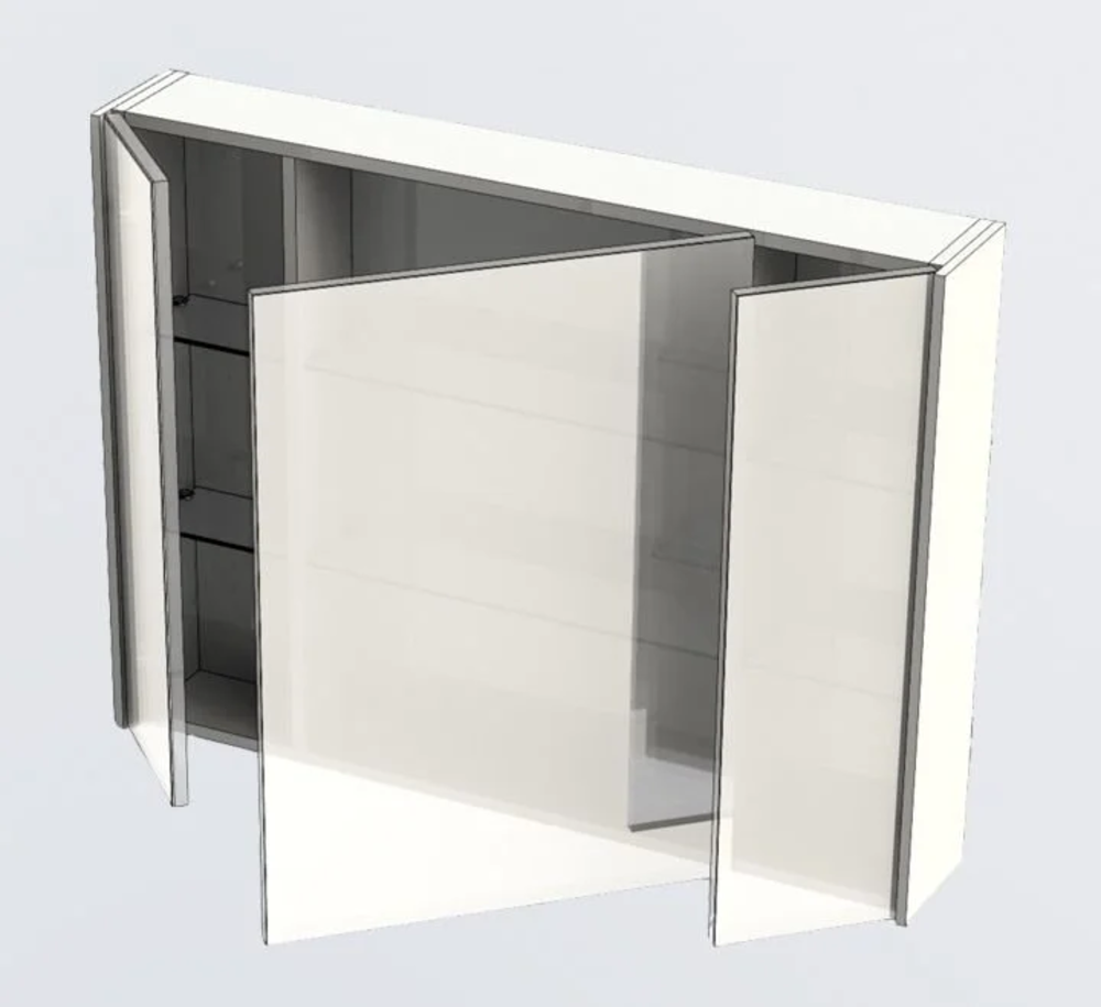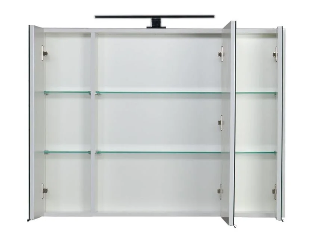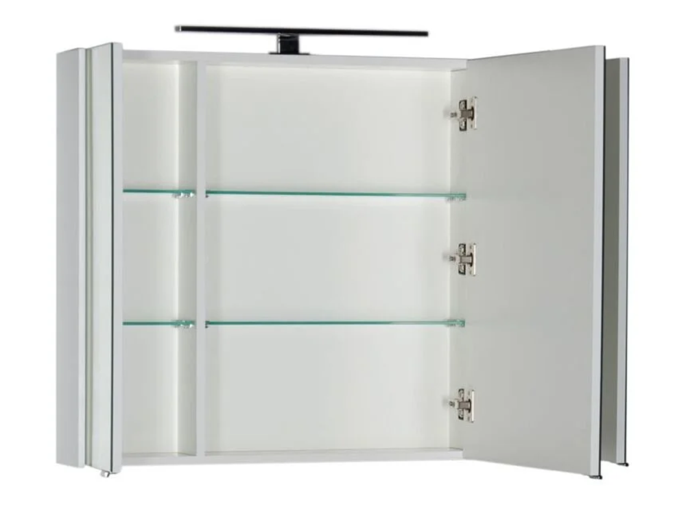 Размер: 100*16.5*75 см Двери: 3 распашные Материал: МДФ, ЛДСП Покрытие: краска/глянец Цвет фурнитуры: хром Цвет: белый части изделия покрашены полностью со всех сторон Светильник приобретается отдельно.