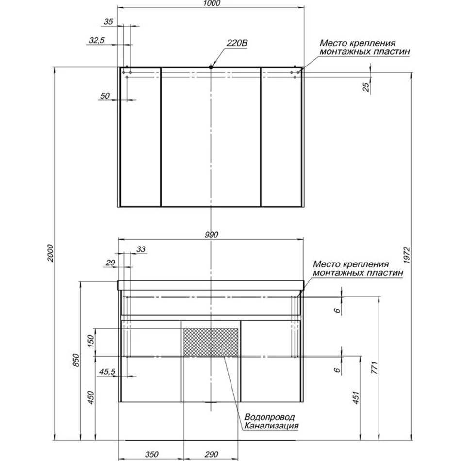 Зеркало-шкаф Aquanet Латина 100 см, 00179636