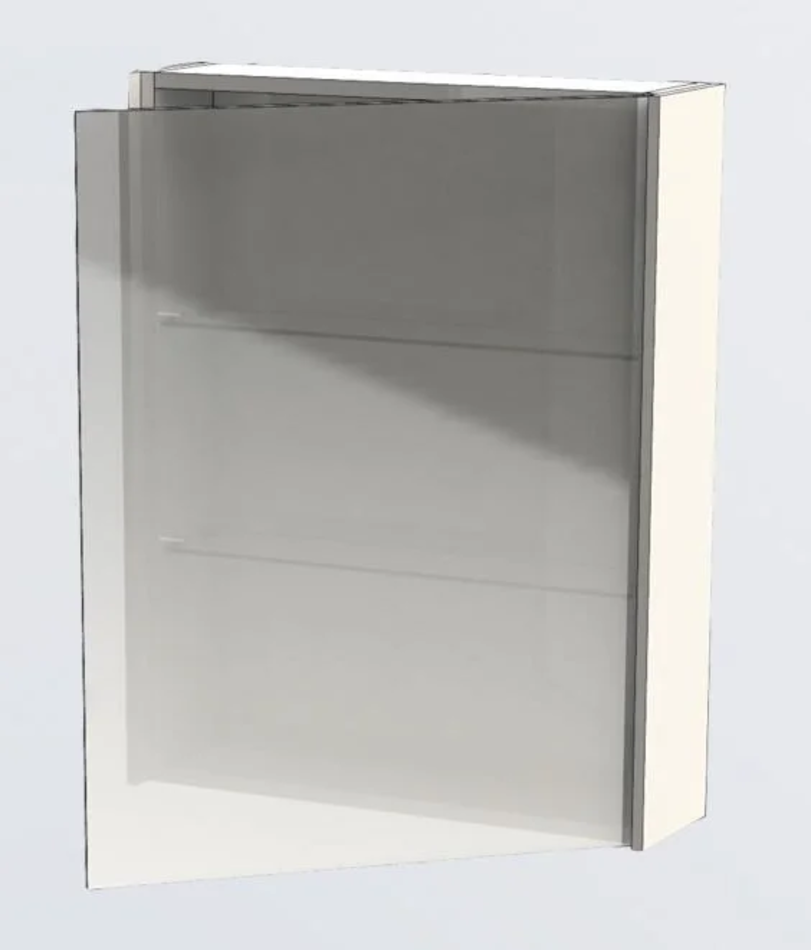 Размер: 60*16.5*75 см Двери: 1 распашная Материал: МДФ, ЛДСП Покрытие: краска/глянец Цвет фурнитуры: хром Цвет: белый части изделия покрашены полностью со всех сторон Светильник приобретается отдельно.