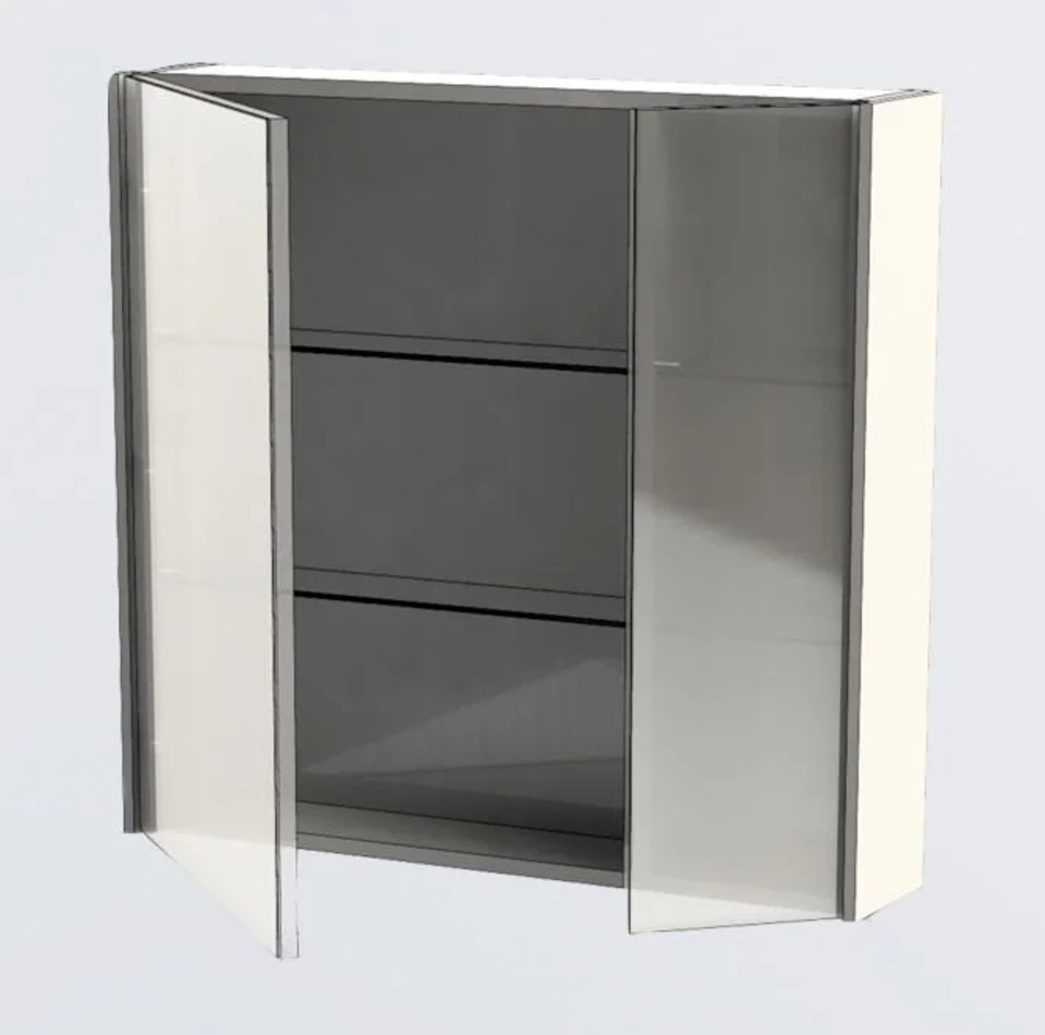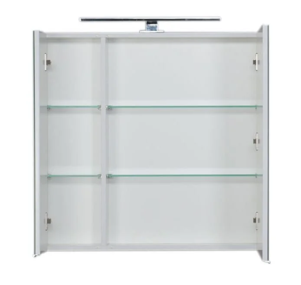 Размер: 80*16.5*75 см Двери: 2 распашные Материал: МДФ, ЛДСП Покрытие: краска/глянец Цвет фурнитуры: хром Цвет: белый части изделия покрашены полностью со всех сторон Светильник приобретается отдельно.