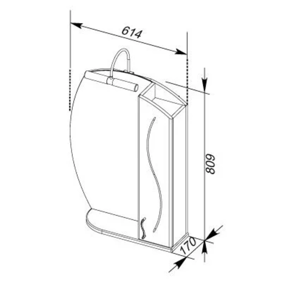 Размер: 61.4*17*80.9 см Шкафчик справа Дверь: распашная с доводчиком Материал: ЛДСП Покрытие: краска/глянец Цвет: белый Светильник приобретается отдельно.