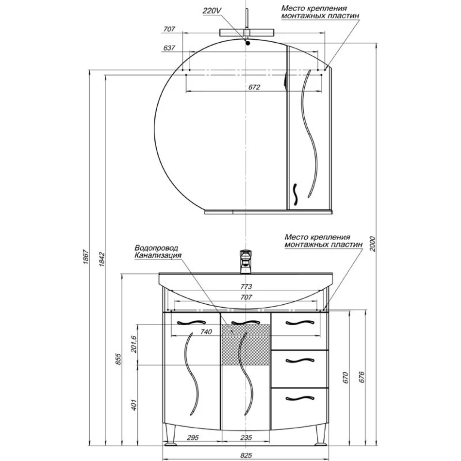Размер: 88*17*84.9 см Шкафчик справа Дверь: распашная с доводчиком Материал: ЛДСП Покрытие: краска/глянец Цвет: белый Светильник приобретается отдельно.