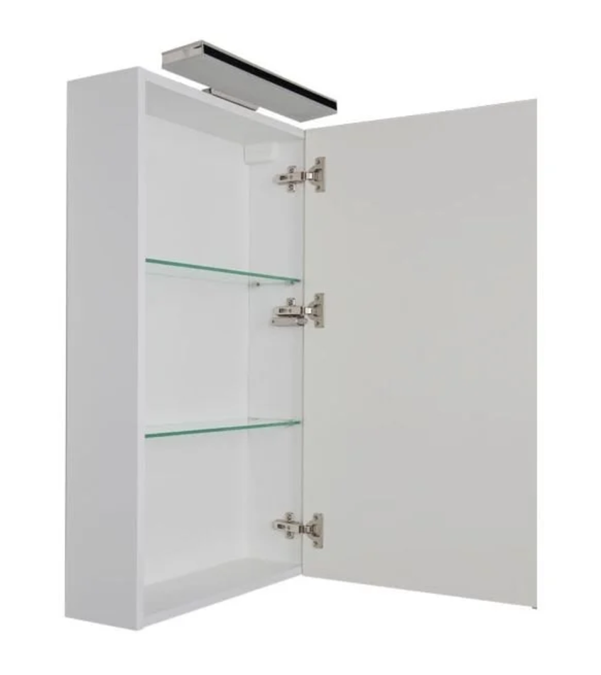 Размер: 50*16*85 см Двери: 1 распашная Материал: МДФ, ЛДСП Покрытие: краска/глянец Цвет: белый Светильник приобретается отдельно.