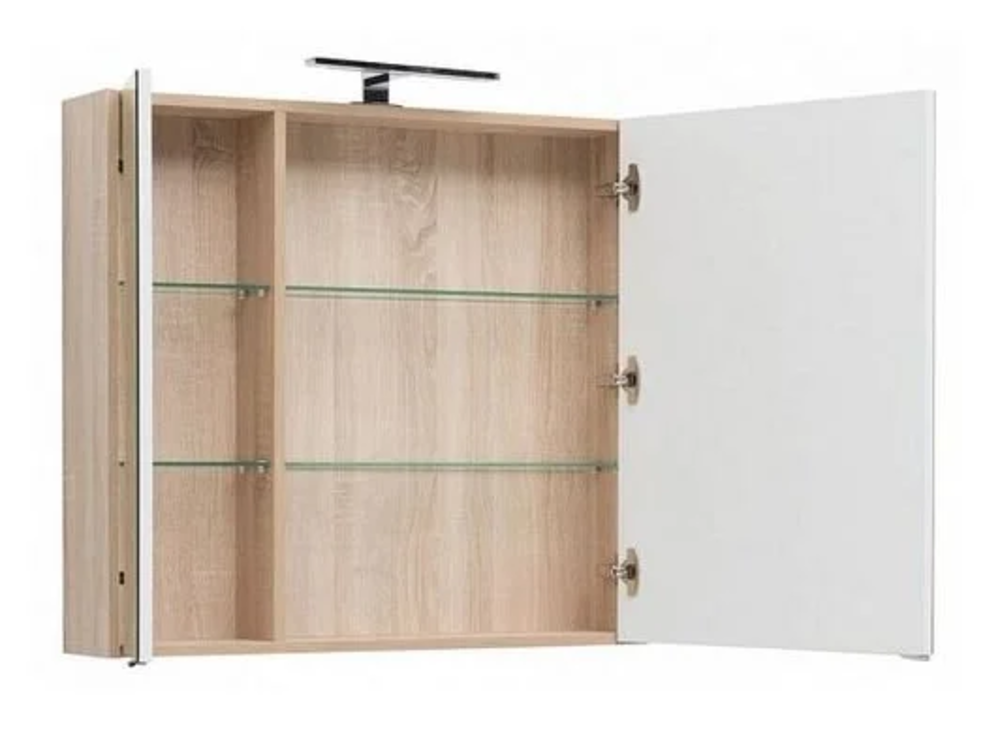 Зеркало-шкаф настенное Размер: 82.5x16.5x75 см Полки Двери распашные: 2 Материал: ЛДСП, МДФ Покрытие: ламинат/фактура Форма: прямоугольная Цвет: дуб сонома/белый