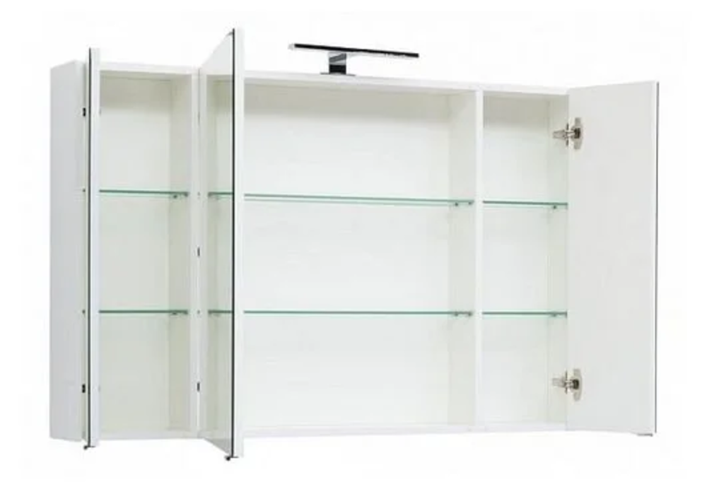 Зеркало-шкаф настенное Размер: 116x16.5x75 см Полки Двери распашные: 3 Материал: ЛДСП, МДФ Покрытие: ламинат/фактура Форма: прямоугольная Цвет: белый