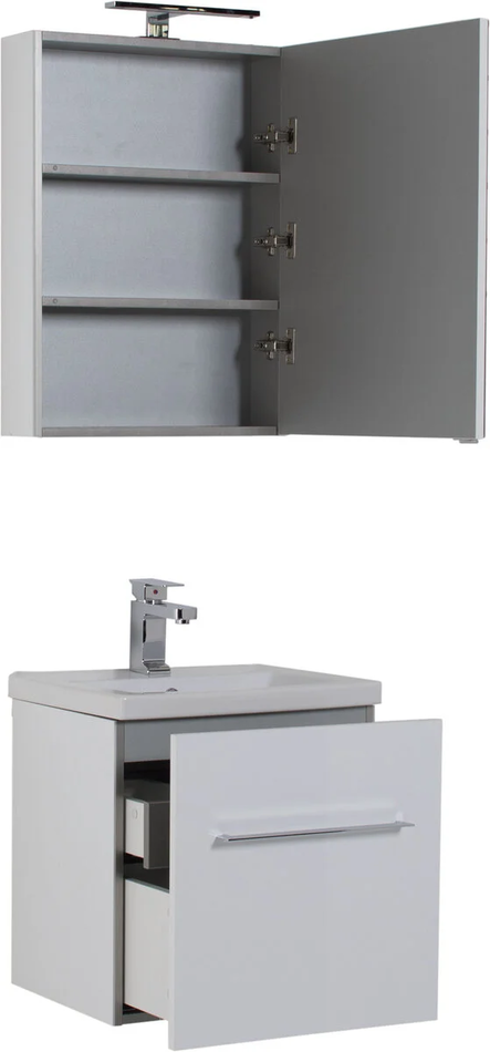 Зеркало настенное без подсветки Размер: 50*14*67 см Двери: 1 распашная Доводчики Монтаж: подвесной Форма: прямоугольная Материал: МДФ, ЛДСП Покрытие: краска/глянец Цвет: белый