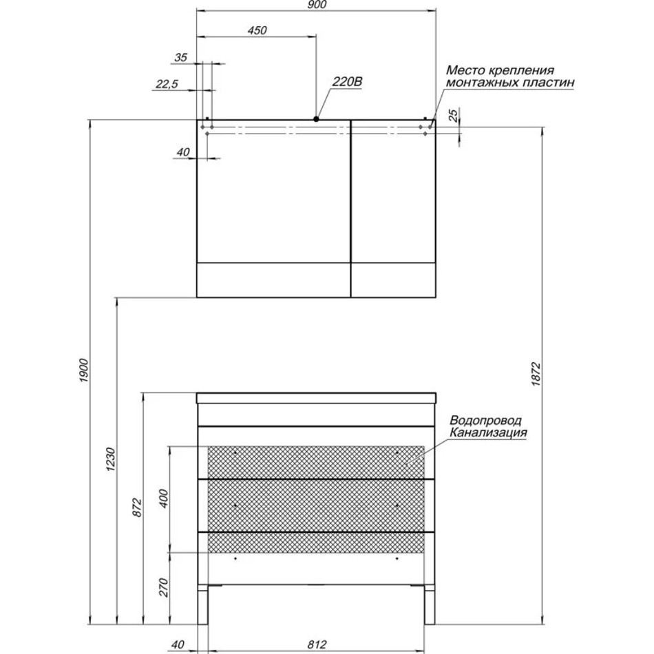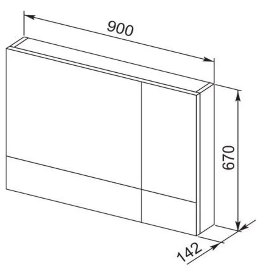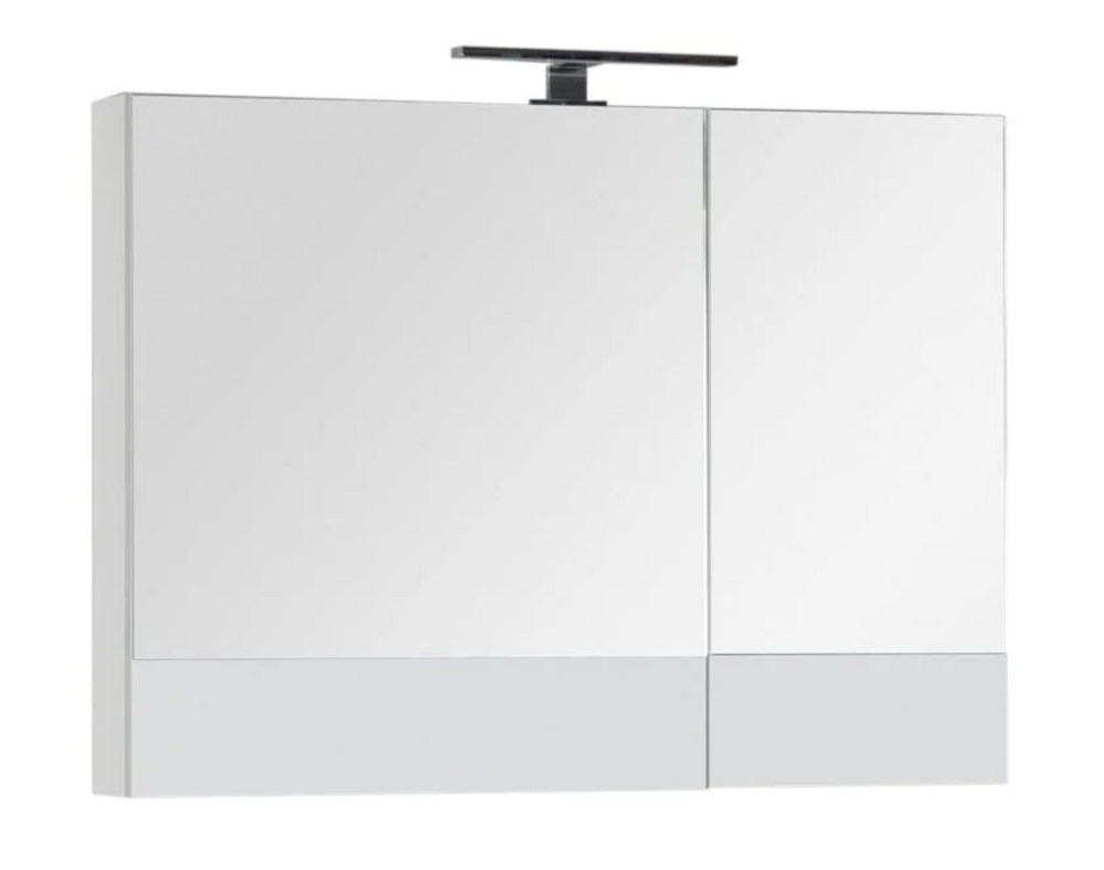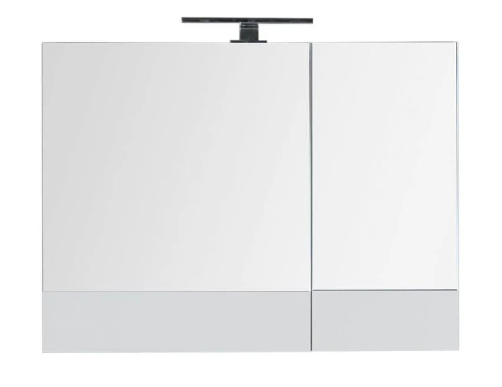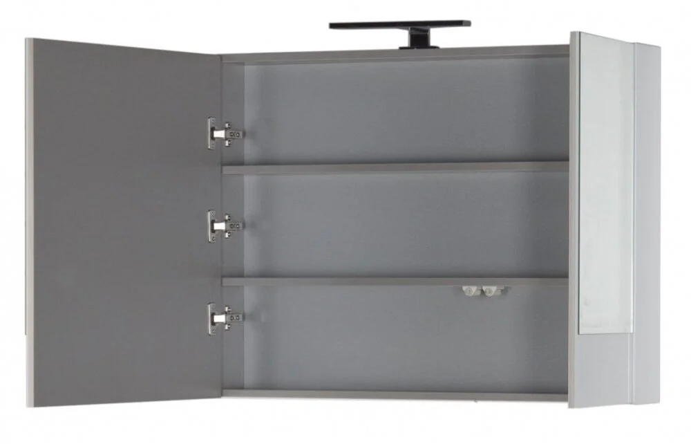 Размер: 90*14.2*67 см Двери: 2 распашные Материал: МДФ, ЛДСП Покрытие: акрил Цвет фурнитуры: хром Цвет: белый/черный Светильник приобретается отдельно.